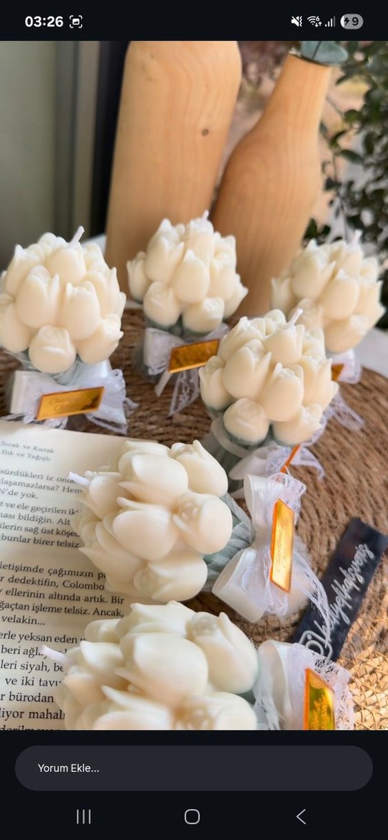 Çiçek demeti şeklinde detaylı yapraklarla tasarlanmış dekoratif sabunlar. Her biri küçük bir etiketle sunulmuş, sanatsal dokunuşlar içerir. Beğendiğiniz modelleri atarsanız yardımcı olurum & Özel günleriniz için mum tasarlanır