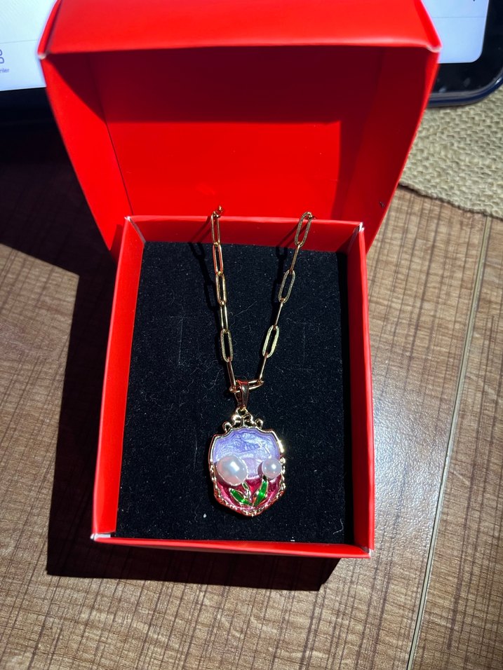 Çiçek Ve Boncuk Desenli Gold Çelik Kolye