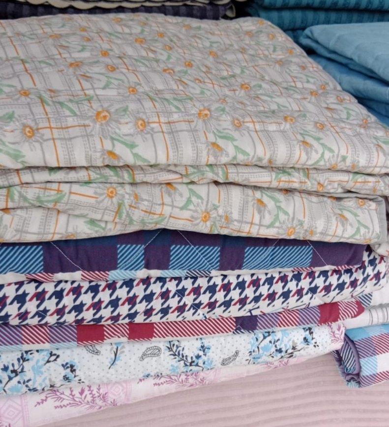 Çiçek ve desenli çok renkli yatak örtüsü, pike