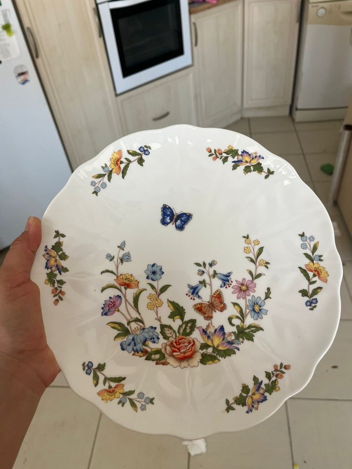 Çiçek ve Kelebek Desenli Beyaz Tabak