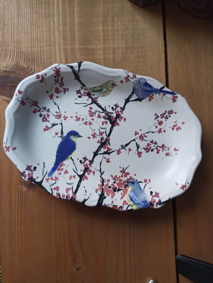 Çiçek ve Kuş Desenli Renkli Tabak