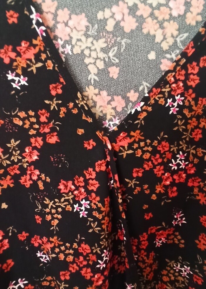 V yaka, kolları ve alt kısımları lastik detaylı. Kolları ip bağlamalı. Beden L yazıyor ama kalıbı küçük.