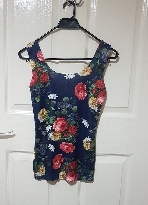 Kalın askılı çiçek desenli bluz