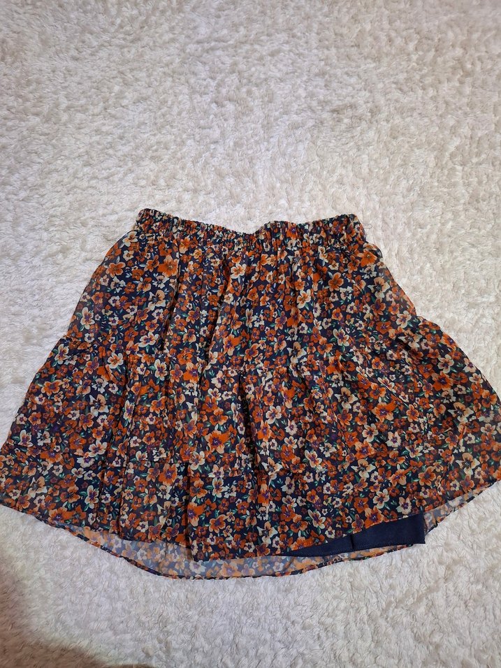Renkli çiçek desenli, bol kesim ve fırfırlı bohem mini etek. Yumuşak sentetik kumaştan, açık hava kullanımı için uygun. Hiç giymedim, astarlı