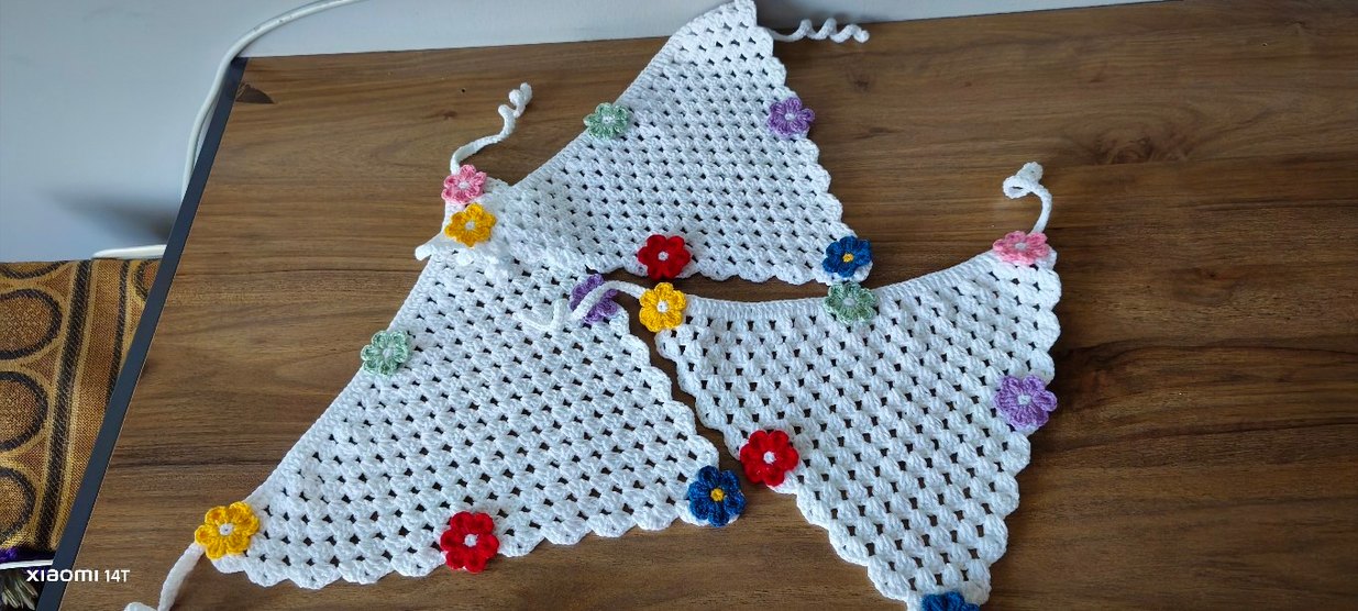 Renkli çiçek detaylı bohem örgü saç bantları, retro ve hippie tarzları için uygun. Yumuşak örgü kumaş ve canlı çiçek süslemeleri içerir.