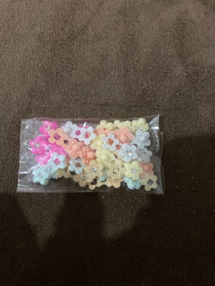 Pastel renklerde, çiçek şeklinde boncuklu çocuk saç tokası seti. Bohem ve retro tarzlar için uygundur.