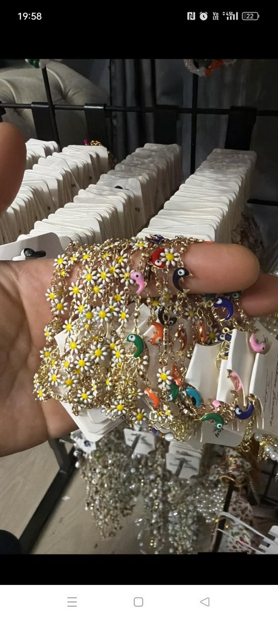 Çiçek desenli ve boncuk detaylı, renkli bohem tarzda kadın el zincirleri, günlük kullanıma uygundur.