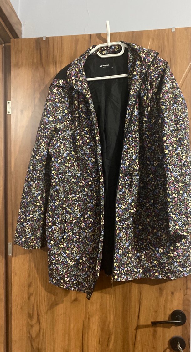 Çiçekli büyük beden kapişonlu yağmurluk mont