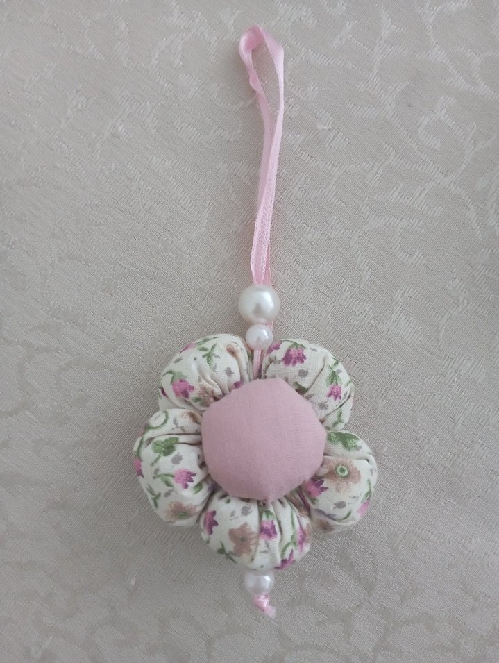 Pastel pembe çiçek desenli, püsküllü bohem tarzı kadın çanta charm ve anahtarlık günlük vintage görünümler için uygun.