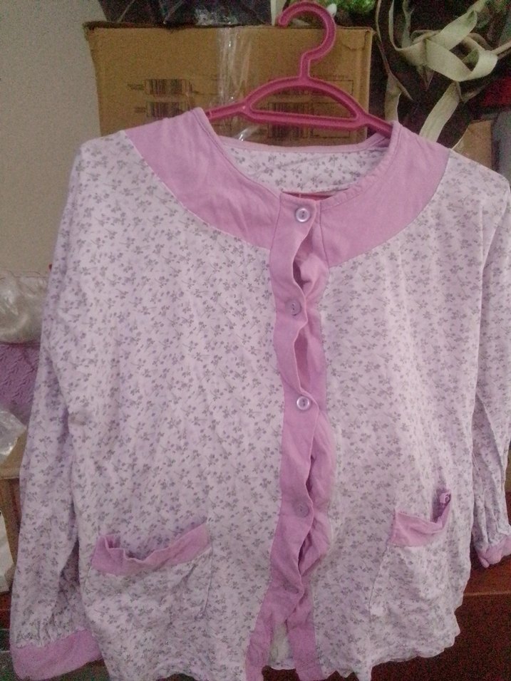 iki kol alti 48 genis kesim. boy 60 dir Pamuk kumaştan yapılmış, uzun kollu ve bol kesim Cicekli renkli Gecelik. Yuvarlak yaka, düğmeli ön ve pastel pembe çiçekli desenlidir, küçük ceplere sahiptir.