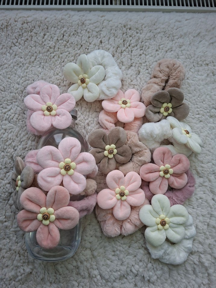 Yumuşak pastel tonlarda, çiçek desenli ve dantel detaylı bohem tarzda saç tokaları. Narin ve retro bir görünüm sağlar.