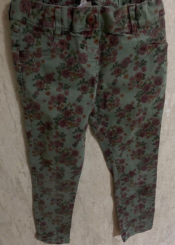 Petrol mavi ustu bordo çiçekli dar kesim bir pantolon. 134 cm. 9 yas diyor nette ama 7-9 arasi giyer. Beline lastik ekli Neredeyse hic kullanmadik.