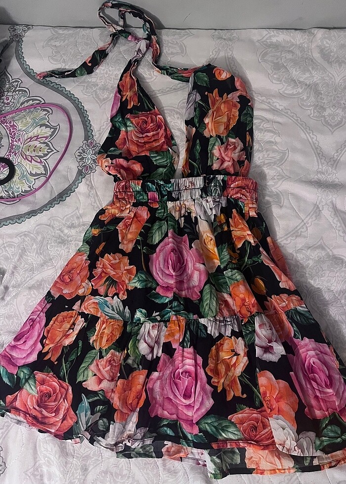 ÇİÇEKLİ DEKOLTELİ ELBİSE