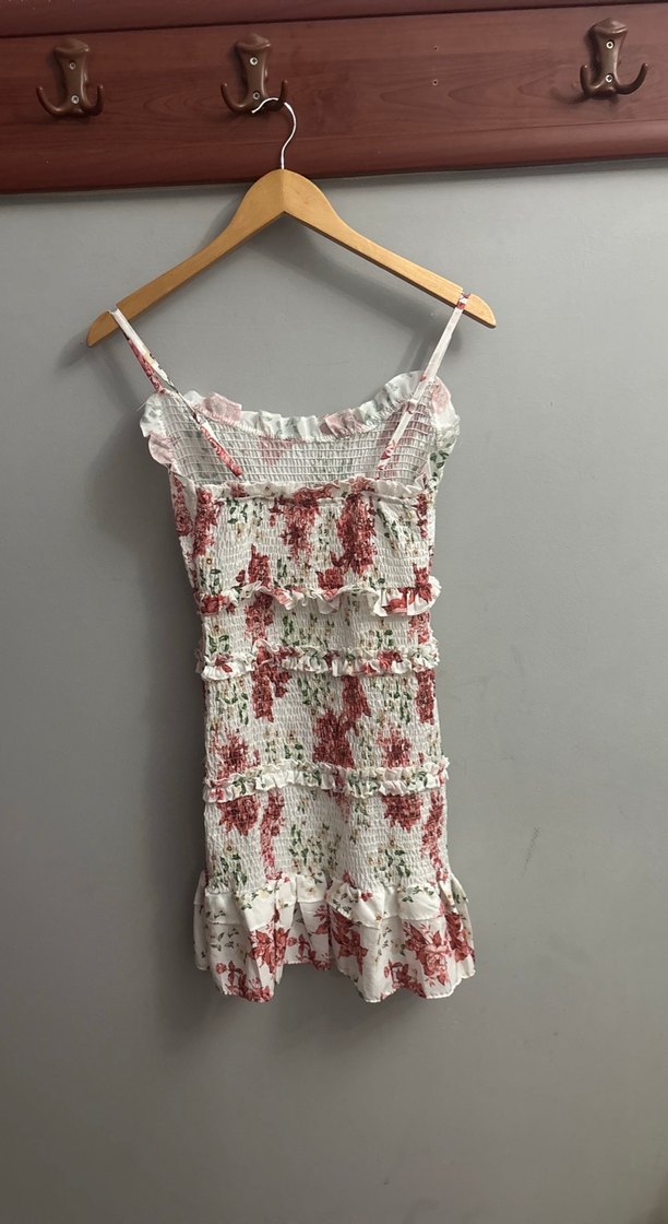 İnce askılı, fırfır detaylı ve çiçek desenli, bohem stile uygun, vücuda oturan midi elbise.