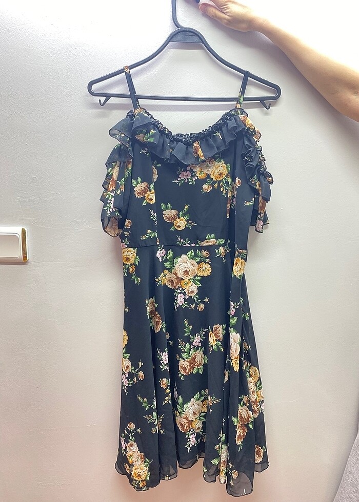 Ürün çok kullanılmadı. Günlük sade çiçekli tiril tiril bir elbise. İp askılı omuzları düşük modelli. 38 beden.