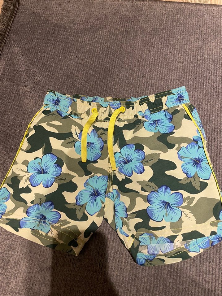 Renkli kamuflaj ve çiçek desenli, sarı bağcıklı kemerli, atletik kesim mini erkek şort, plaj ve sokak stiline uygun.