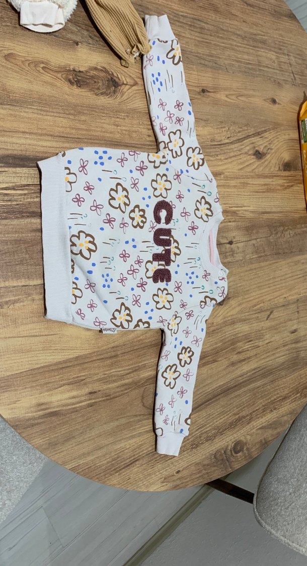 Rahat kesim, kapüşonlu kız sweatshirt, renkli çiçek desenli ve düğmeli detaylı, yumuşak ve sıcak kumaştan üretilmiştir.