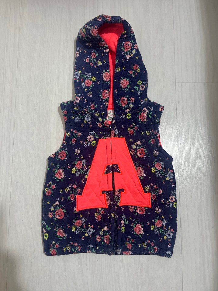 Kızlar için çiçek desenli, kapüşonlu ve fermuarlı yelek. Soft ve sıcak kumaştan, dar kesimle casual tarzda.