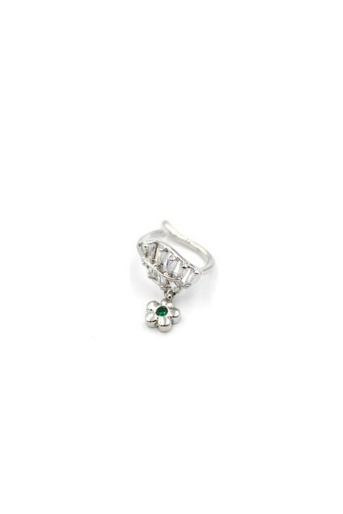Yeşil taşlı küçük çiçek figürlü kıkırdak küpe.