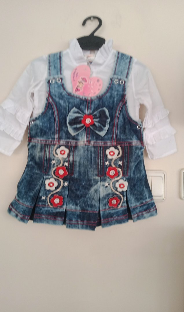 Çiçekli Kot Kız jile/beyaz gömlek ile