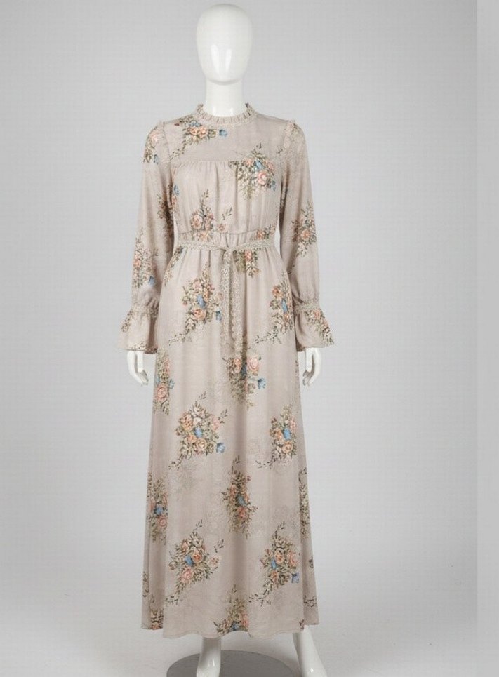 sadece bir kez giyebildim çok kilo aldığım için dar geldi tertemiz sıfır sayılır şifon çiçekli krem rengi çok tatlı bir elbise