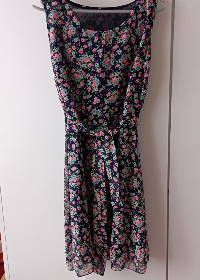 Çiçekli kuşaklı elbise. Doğum günü, kına, düğün için de uygundur. Işıktan dolay rengi daha iyi görebilmek için en sonda yakın çekimde vardır. İsteyene tekrar görsel atılabilir. Sadece iki kere giyilmiştir bir kusuru yoktur. Hem m hem l benden için uyumludur .