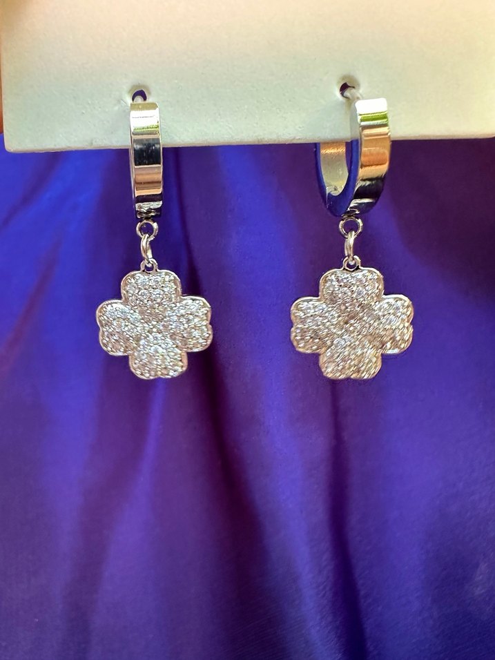 Çelik ürün mini uzunlukta, payet işlemeli çiçek desenli küpeler. Çağdaş stil ile klasik zarafeti birleştirir. Düğünler için uygundur.