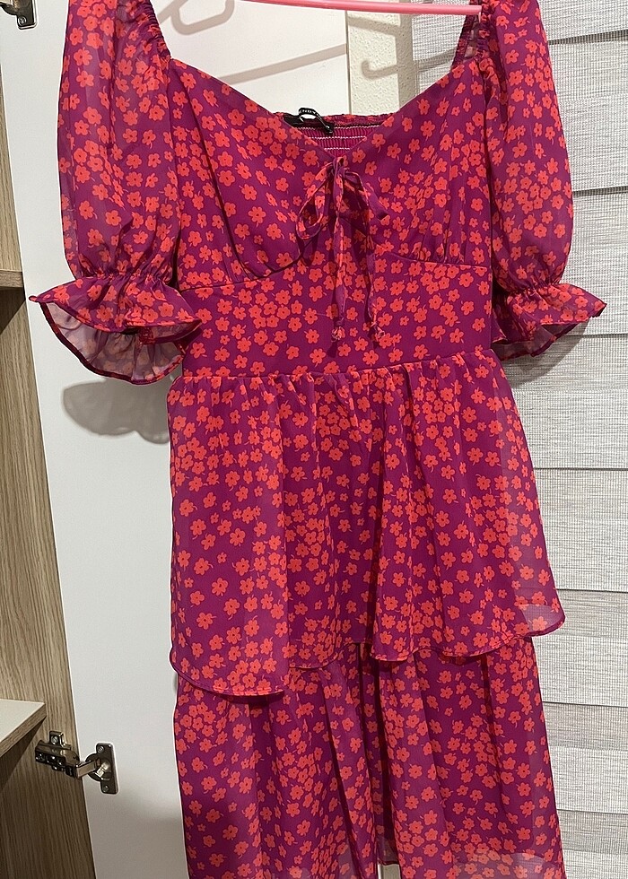 Trendyol milla pembe turuncu çiçek detaylı elbise Astarı mevcut s beden bir kez giydim