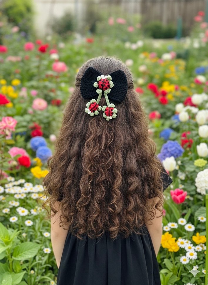 Renkli çiçek desenli, fiyonk detaylı saç tokası. Bohem ve retro tarzlara uyum sağlar, saçlara canlılık katar.