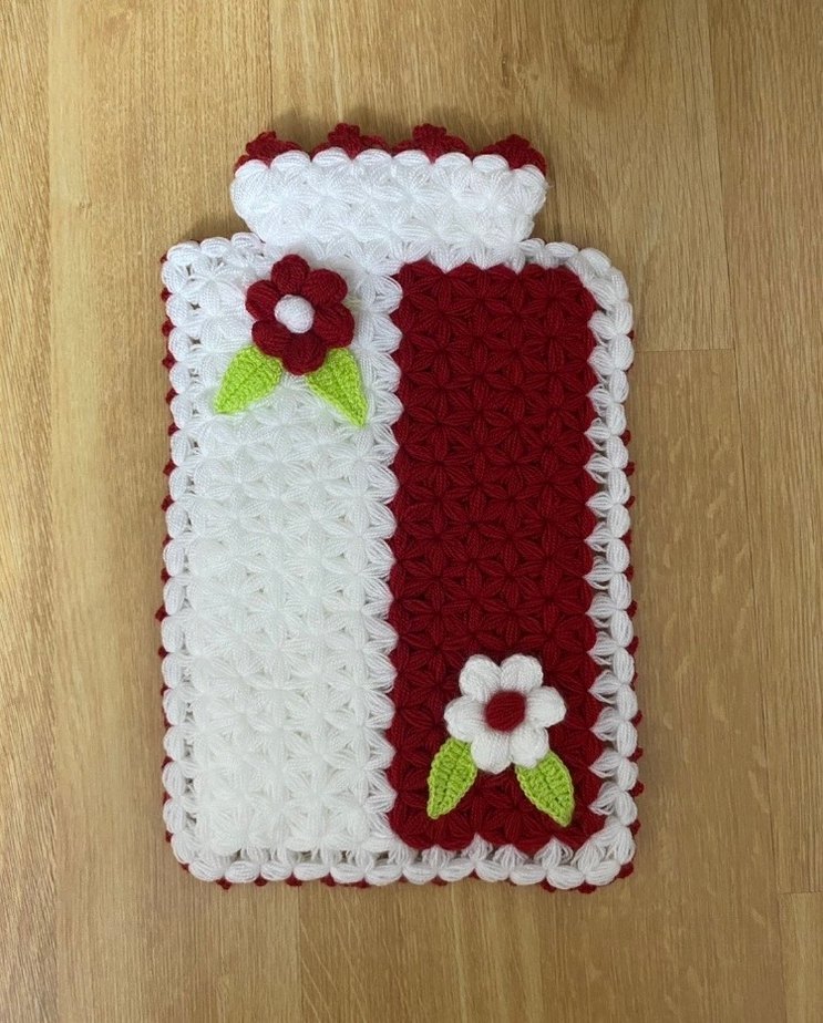 El emeği Beyaz ve kırmızı renklerde, çiçek ve yaprak desenli renkli örgü banyo lifi.Yumuşak ve dekoratif, banyo için uygundur. Lif çeşitleri mevcuttur