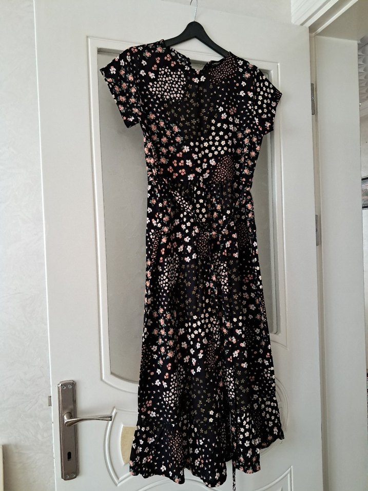 Pamuklu kısa kollu çiçekli midi elbise oldukça rahat kemeri mevcut altı kısmı pilili. 2 3 kez ancak giyildi. Tertemiz hiçbir yerinde bir şey yok.
