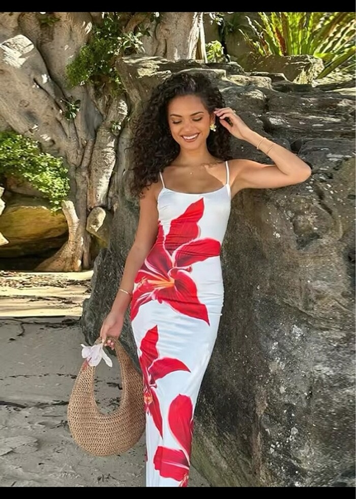 Çiçekli Uzun Elbise