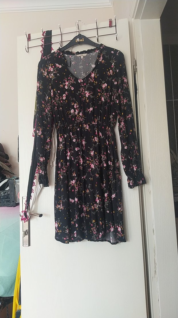 Çiçek desenli, V yakalı midi boy bohem elbise. Uzun kollu, detaylı ve bol kesim, yumuşak sentetik kumaştan üretilmiştir. Günlük kullanıma uygundur.