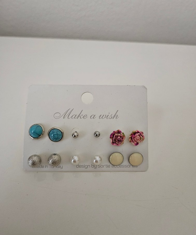 Çiçekli ve Boncuklu Mini Kadın Küpe Seti 6 çift