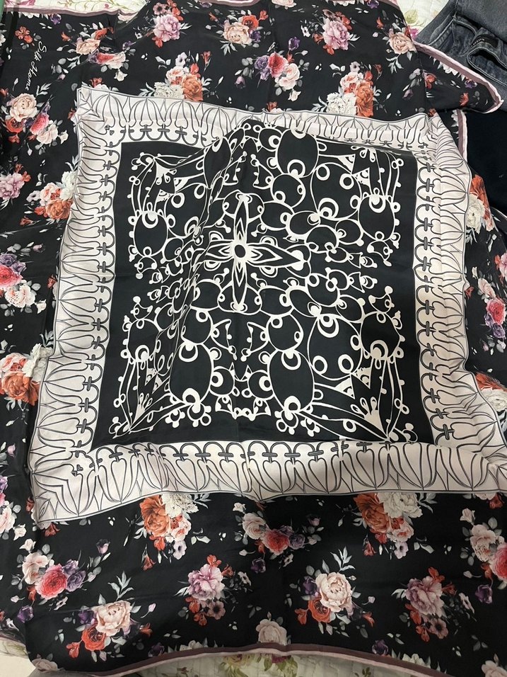 Silk home marka deforması olduğu için uyguna bırakıyorum. Kadınlar için bohem tarzda, koyu renkli çok renkli çiçek ve desenli fular. Sentetik kumaştan üretilmiş, fırfır detayları içerir.