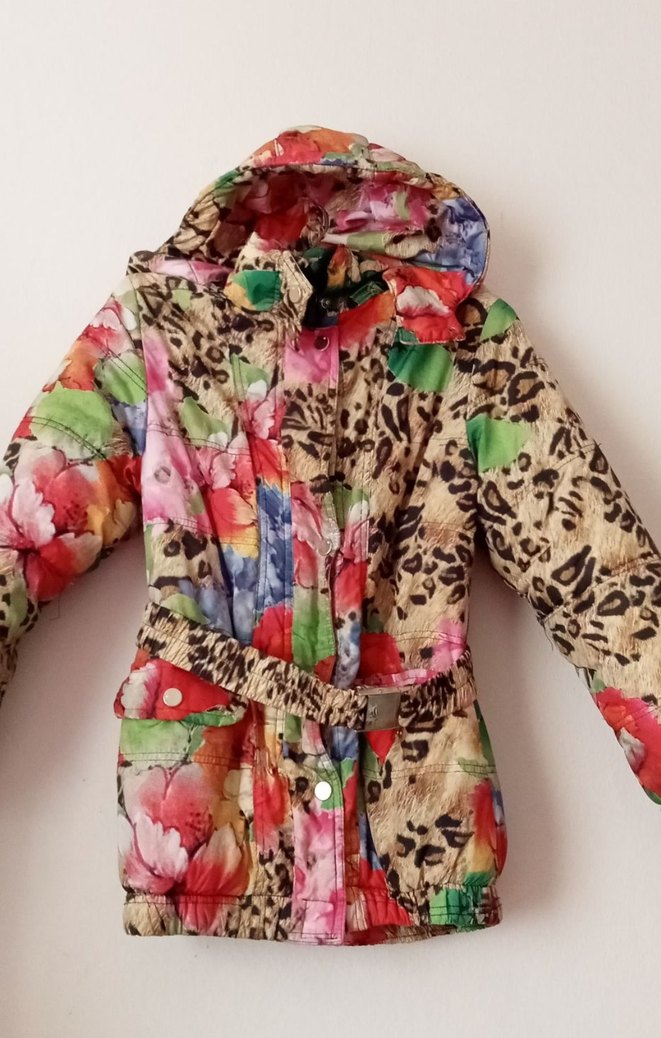 Renkli batik desenli, kürklü detaylı, notched lapel yakalı, bohem ve retro tarzda kız montu.