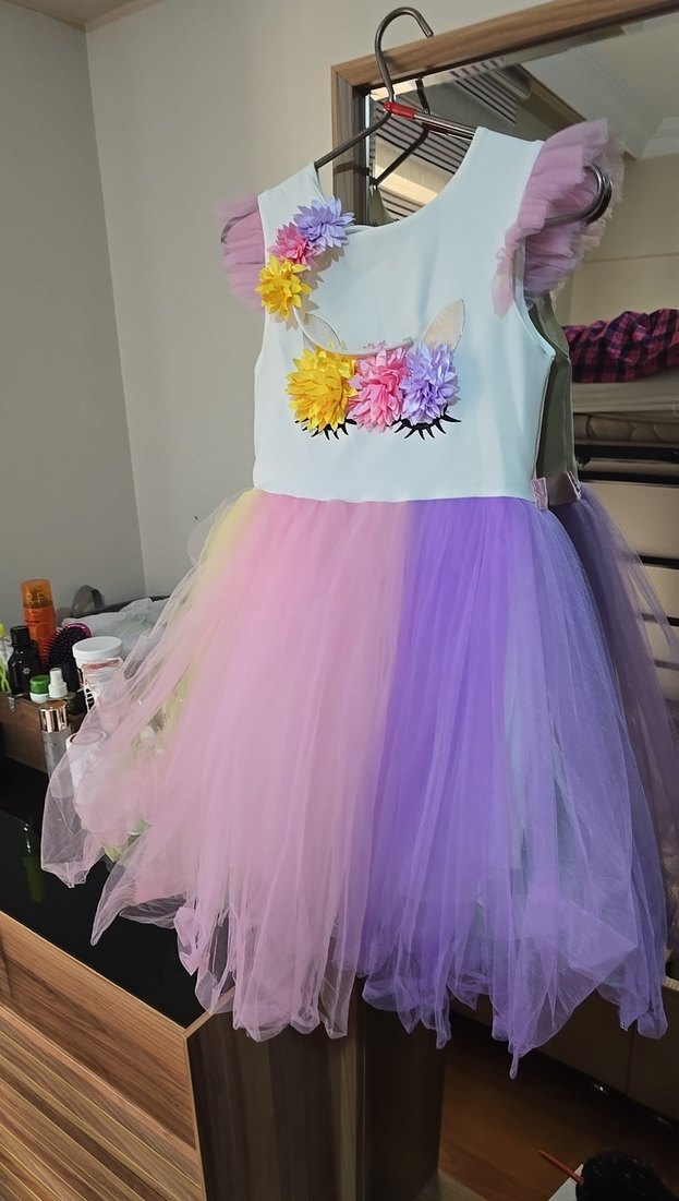 Çiçekli ve Tüllü Kız Çocuk Elbisesi