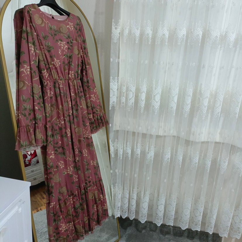 çiçekli yarasa kollu elbise etiketli üründür