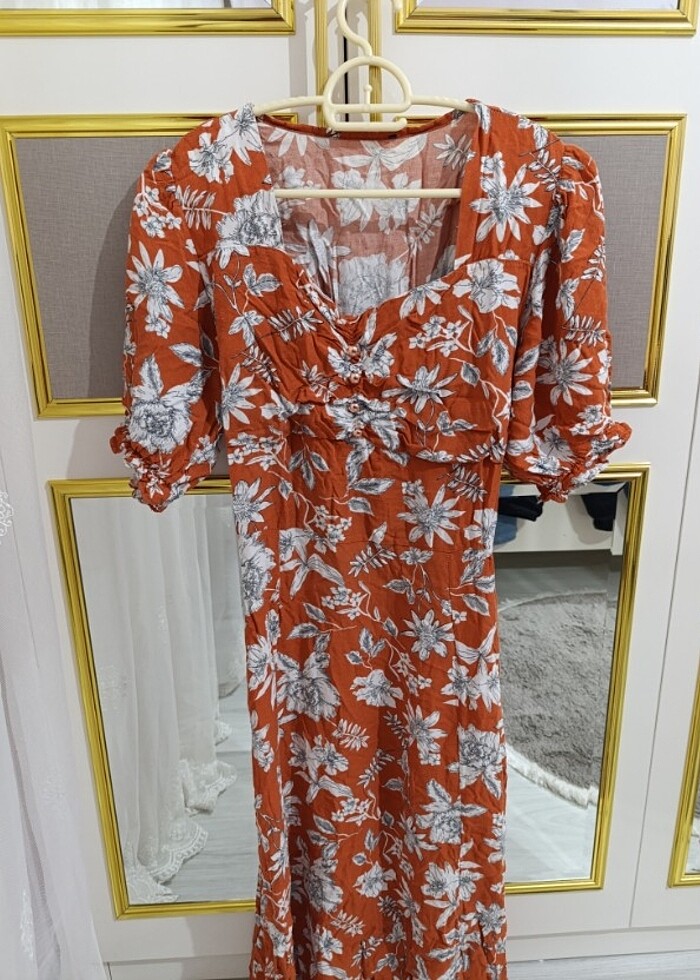 M beden midi boy yırtmacı daha derin ben elle dikerek kısa yirtmac bırakmistim açabilirsiniz hic bir sorun yok balon kol göğüsleriniz küçük ise biraz bol kalabilir göz önünde bulundurun.