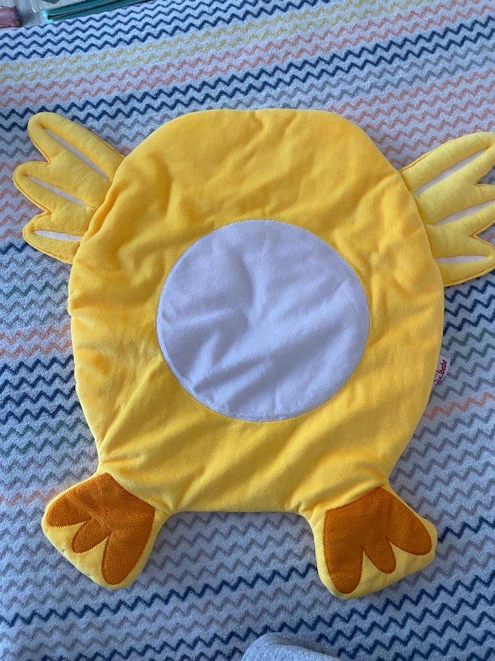Sarı renkte, nakışlı detaylara sahip çocuk uyku aksesuarı, yumuşak sentetik kumaştan yapılmıştır ve renkli bir görünüm sunar.