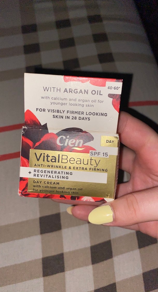 Cien VitalBeauty gündüz kremi SPF15 içerir, kalsiyum ve argan yağıyla cildi yeniler ve canlandırır. 28 gün içinde daha sıkı ve genç görünen cilt sağlar. Hiç açılmadı.
