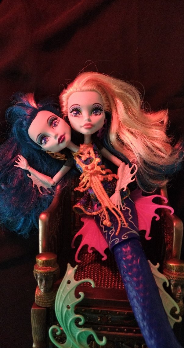 Canlı çok renkli detaylara sahip, uzun saçlı, çift başlı koyu tonlu denizkızı bebek. ♀️ standı yok Bebeklerin parçalarını ayrı satmıyorum Taht dahil değildir.