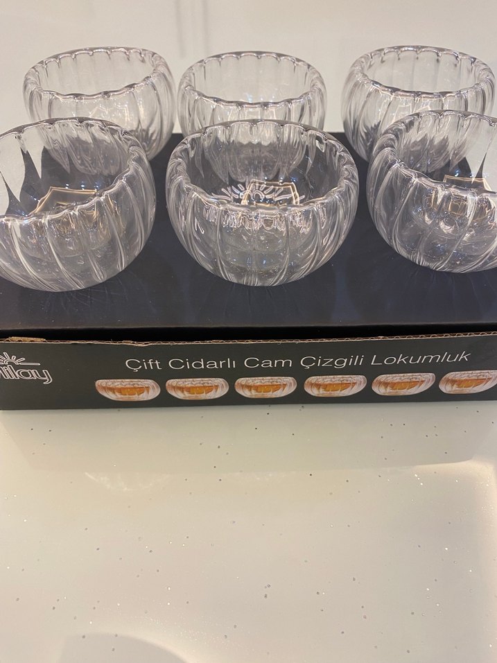 Çift cidarlı çizgili cam lokumluk seti