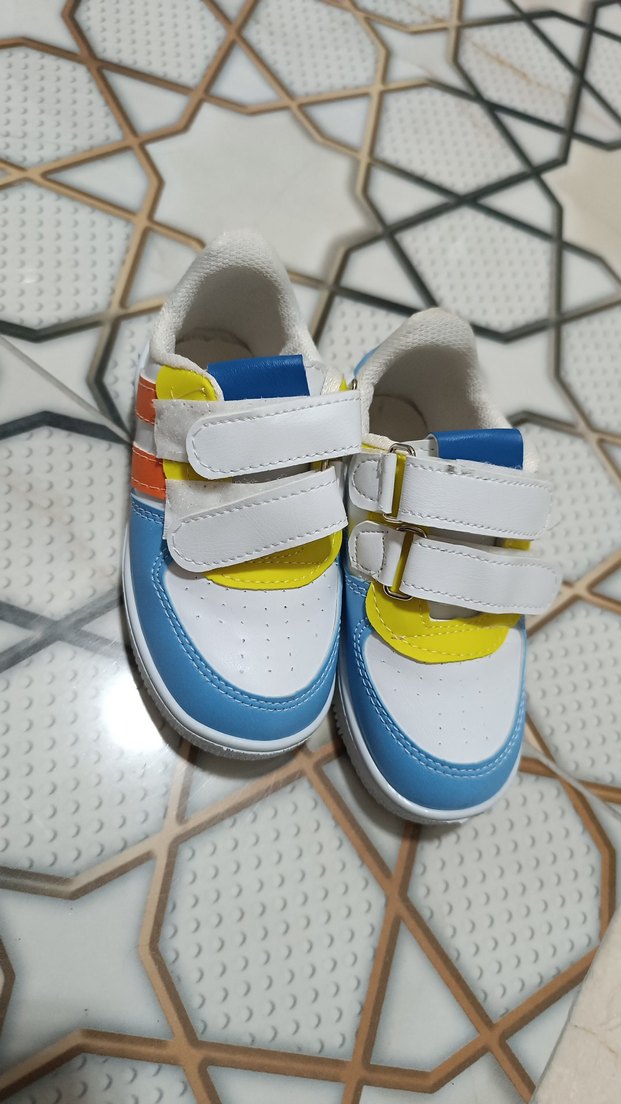 Çift cırtlı bantları ve renkli tie-dye deseniyle erkek çocuk spor ayakkabısı. Kauçuk tabanlı, rahat ve sokak stiline uygun.