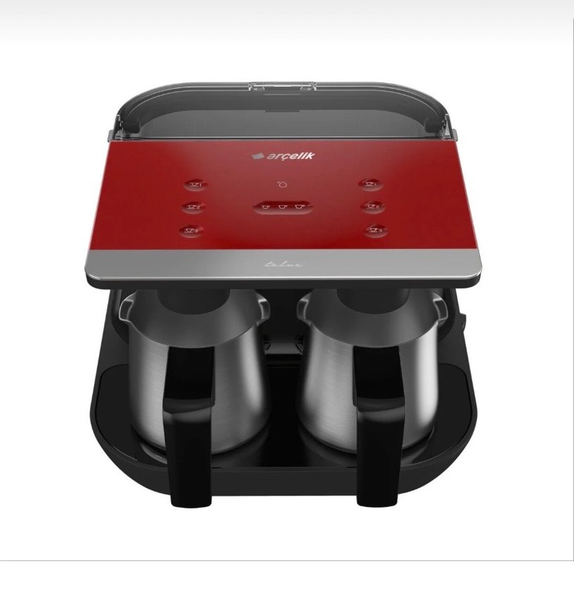 Bir ay kullanıldı sorunsuz Koyu kırmızı üst paneli ve iki paslanmaz çelik demliğiyle Arçelik kahve makinesi, aynı anda kahve demlemeye uygundur. Önünde kullanışlı düğmeler bulunur. ☕