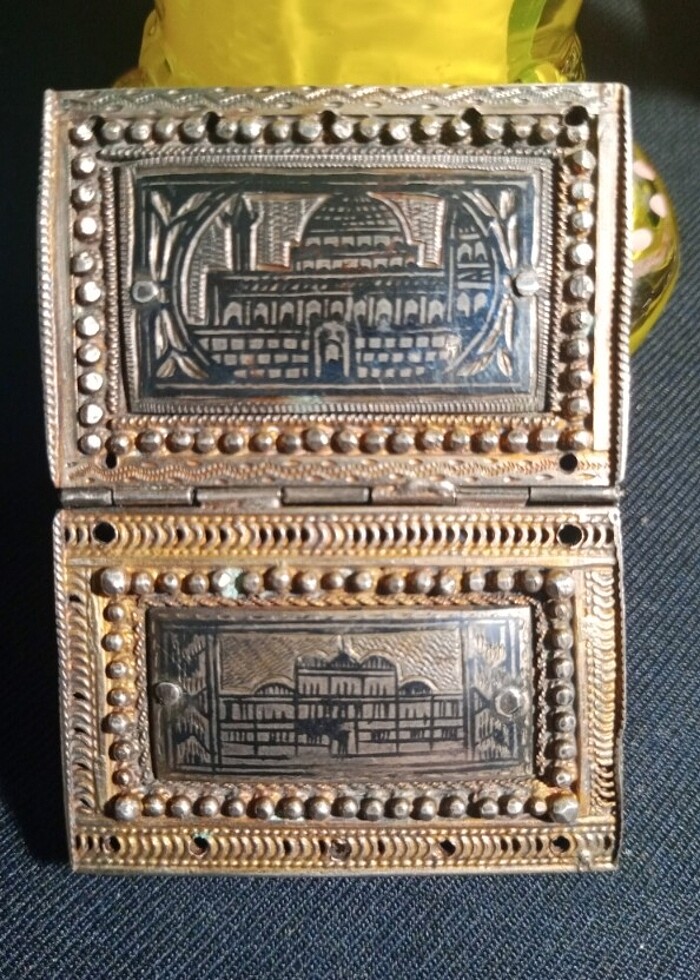 Gümüş savatlı Çerçeve kısmı Altın Çift gözlü enfiye Kutusu