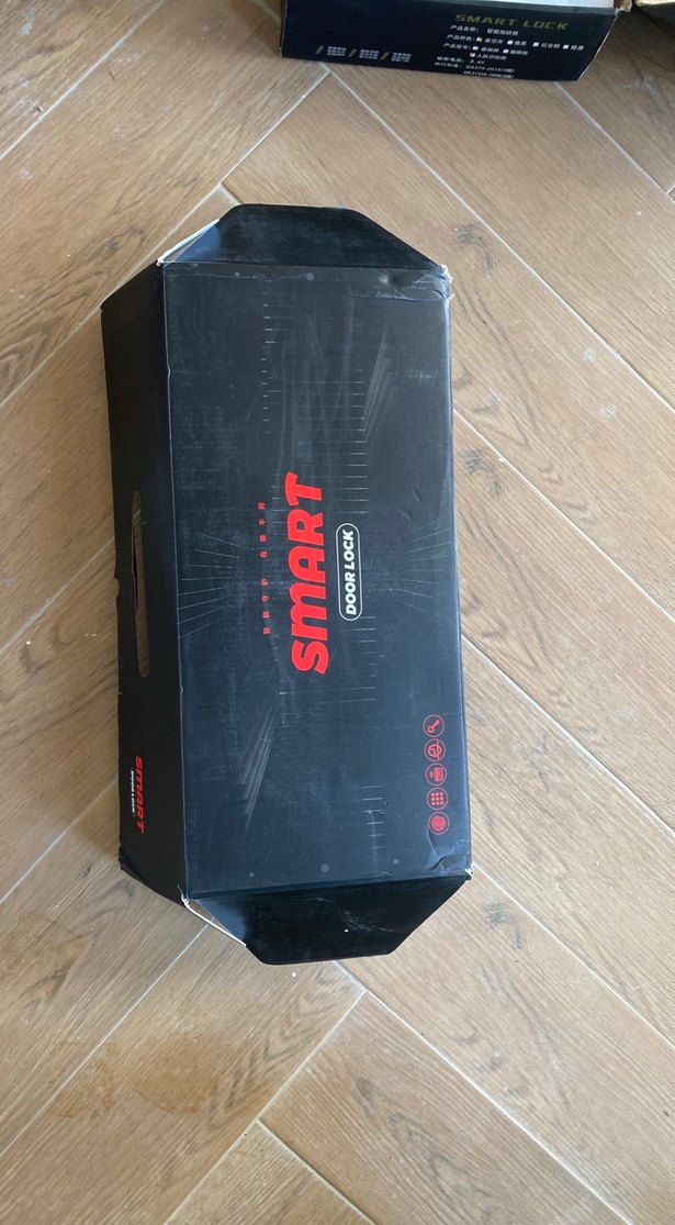 Siyah renkli, son teknoloji ürünü güvenlik kilidi; çift kamera (üst ve alt), parmak izi sensörü ve şifre özelliklerine sahiptir. .