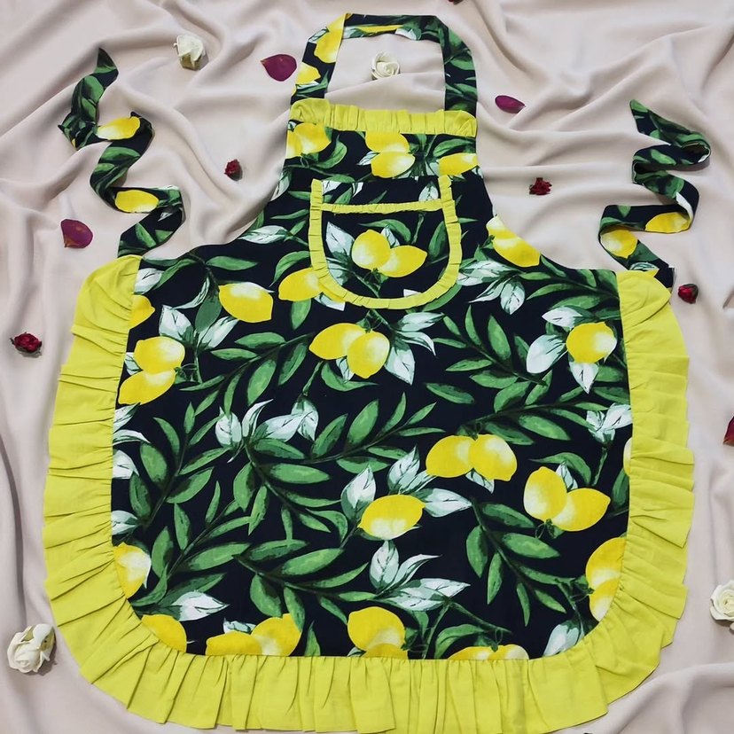 Renkli limon desenli mutfak önlüğü, ön cepli ve sarı fırfırlı kenarlarıyla dikkat çekiyor. Dilediğiniz renk ve modeller ile giyim ve mefruşat alanında dikim bizden sorulur. Ürünlerimizin tamamı özel dikim, sıfır ve etiketlidir...