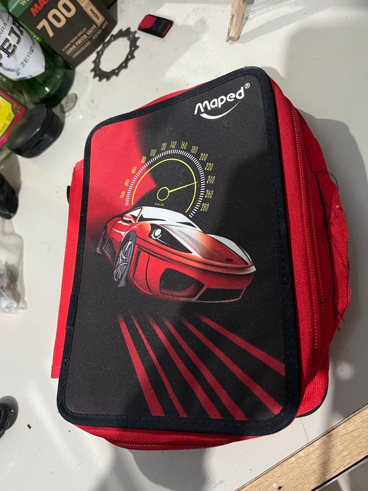 Defolu fotoğraflardaki gibi, dikilebilir. önünde araba baskısı ve canlı kırmızı renkte tasarlanmıştır. Okul için uygun kompakt yapıya sahiptir.
