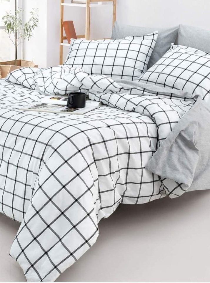 Beyaz zemin üzerine gri ekose desenli nevresim ve çarşaf takımı, yatak odanıza modern ve temiz bir görünüm kazandırır. Yumuşak ve konforludur. ️